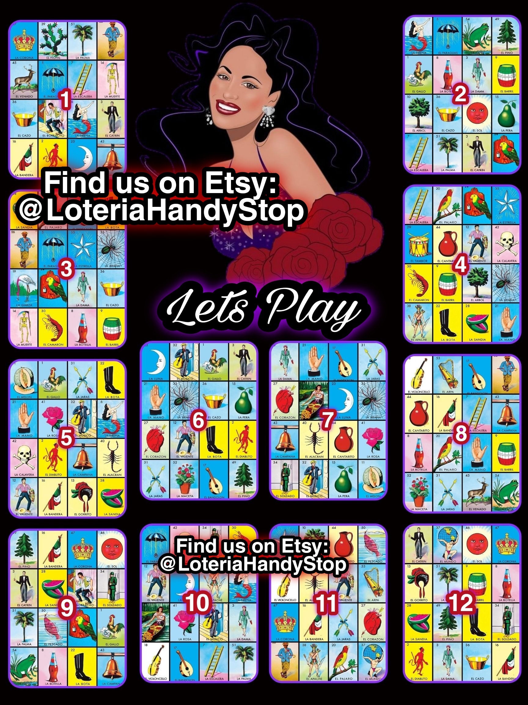 Selena Quintanilla Loteria Board Game 12 Numbers Full Cards To Etsy